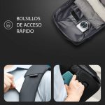 Estilo: Mochila antirrobo con diseño moderno. Con compartimiento para notebook y puerto USB.